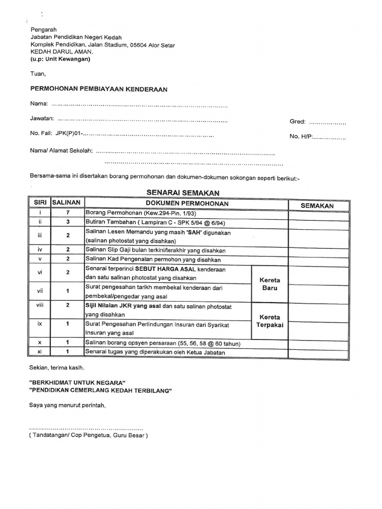 Permohonan Skim Pinjaman Kenderaan Kerajaan Sarip Kay